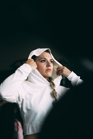 This crop hoodie has a combination of both our French Terry fabric for a solid feel and Rib to add stretch and style. The hood is covered with our rib fabric as lining for a softer feel. Stylish and functional are the key words to describe this piece